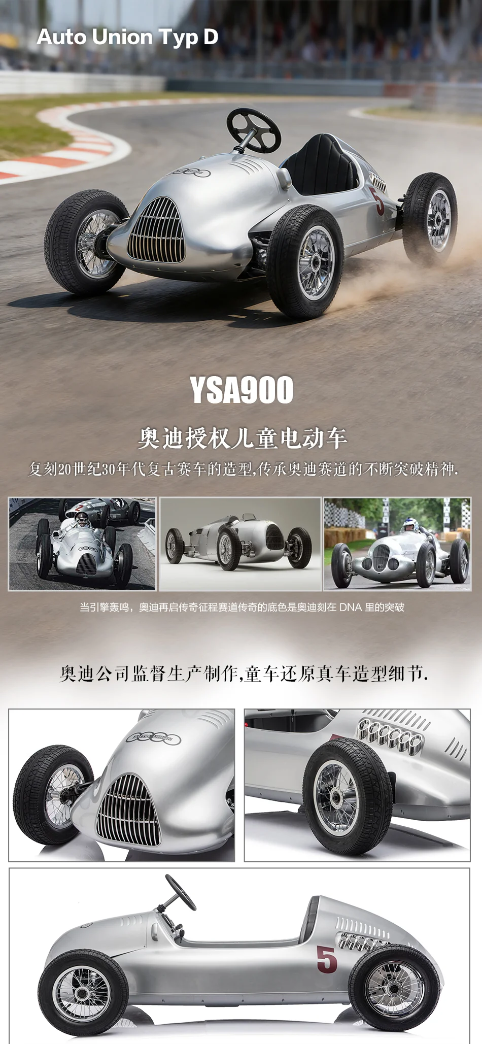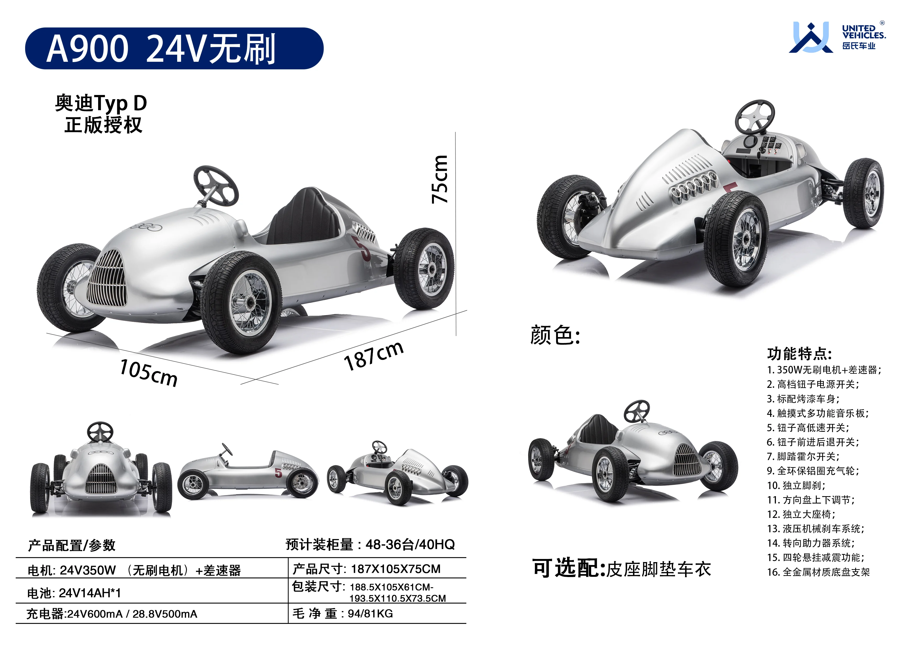 岳氏車業(yè)新品推出YSA900奧迪授權(quán)~單座兒童電動車銀艦賽車